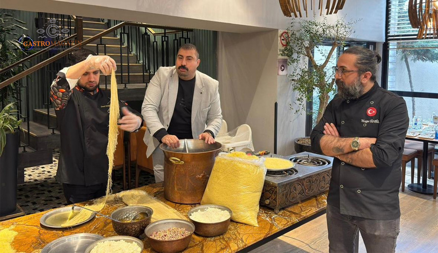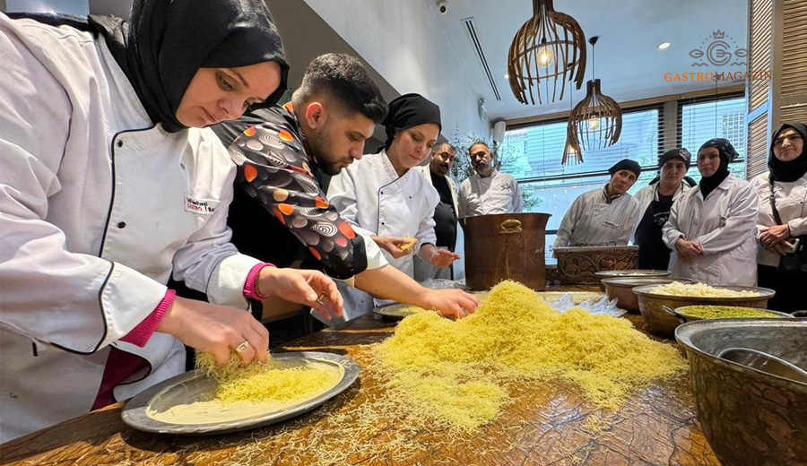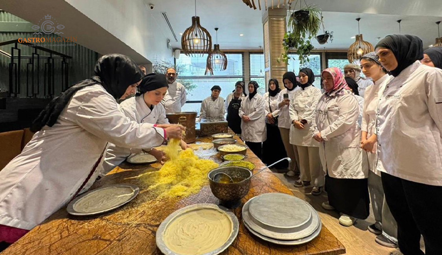 GastroSanat öğrencilerine yönelik olarak planlanan bu özel derste, künefenin yalnızca bir tatlı değil; köklü bir mutfak geleneğini temsil eden önemli bir kültürel değer olduğu vurgulandı. Eğitim süresince öğrenciler, künefenin hazırlanışından sunumuna kadar uzanan tüm aşamaları uygulamalı olarak deneyimleme fırsatı buldu. Doğru tel kadayıf seçimi, künefede kullanılan peynirin özellikleri, şerbet dengesi, bakır tepside pişirme teknikleri ve ideal kıvamın yakalanmasına yönelik püf noktaları ayrıntılı şekilde aktarıldı.