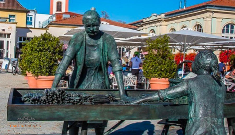 Schwetzingen Sarayı Camisi, ufak kafeleri ve restorantları ile ünlenirirken asıl bizi cezbeden; kuşkonmaz sebzesinin ana yurdu olmasıdır. Şehrin belirli bölgelerinde kuşkonmaz heykellerinin yanı sıra el arabasında satılan kuşkonmaz sebzesi ile karşılaşmak ve dahası şehrin restoranlarında zeytinyağlı aperitifinden her türlü ana yemeğine ve yemek eşlikçisi olarak rastlamak, bu ufak ve sevimli şehri daha da güzelleştiren detaylardan.